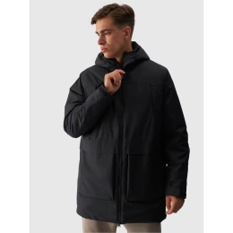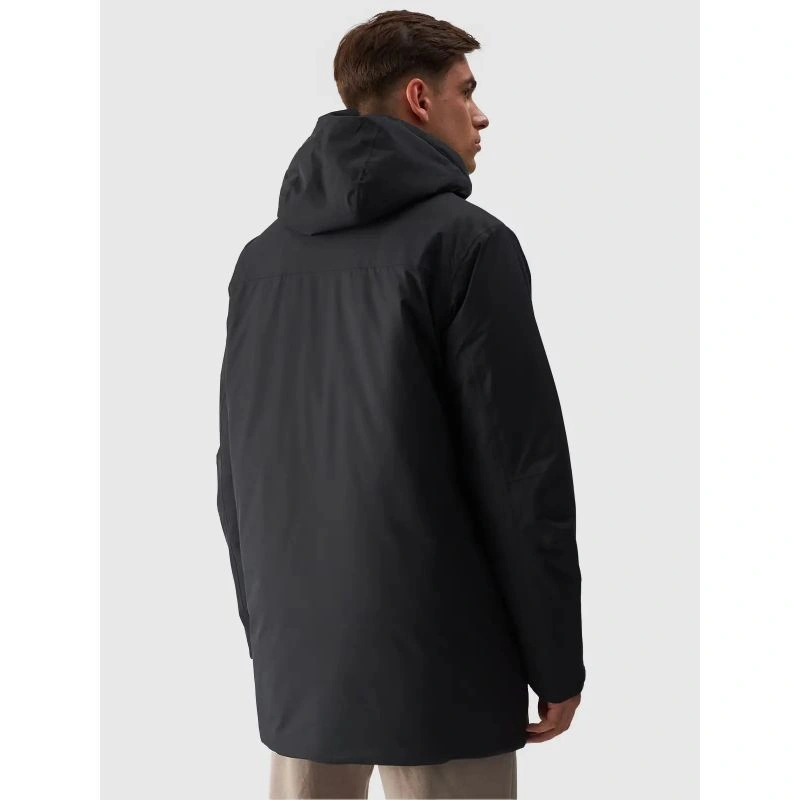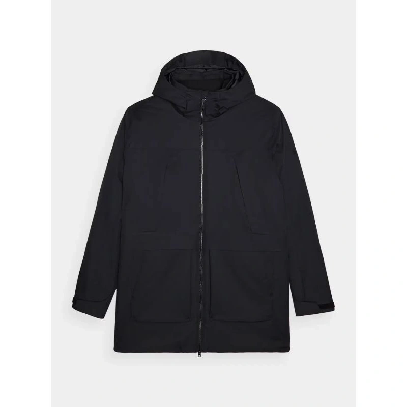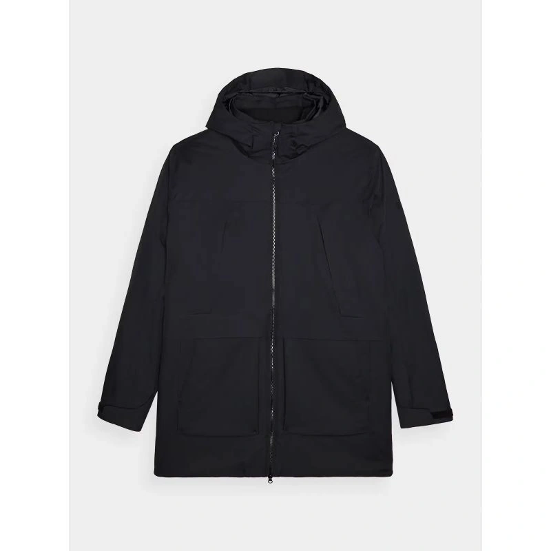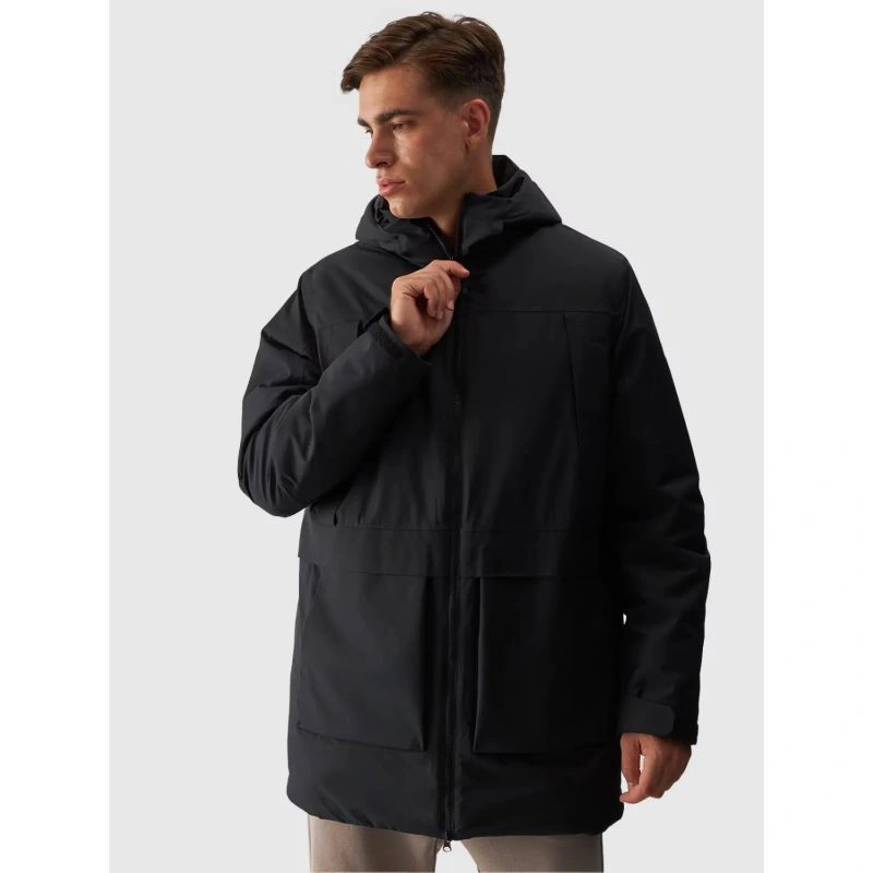 Pánská přechodová bunda s kapucí je ideální jako součást běžného každodenního oblečení a díky použitým vlastnostem a technologiím ji lze nosit i při sportovních aktivitách. Poskytne dobrý tepelný komfort v chladnějších dnech. Je vyrobena ze syntetického materiálu, který je odolný a snadno se udržuje, má regular střih, který se pohodlně přizpůsobí postavě, a prodloužený střih, který sahá až za boky.