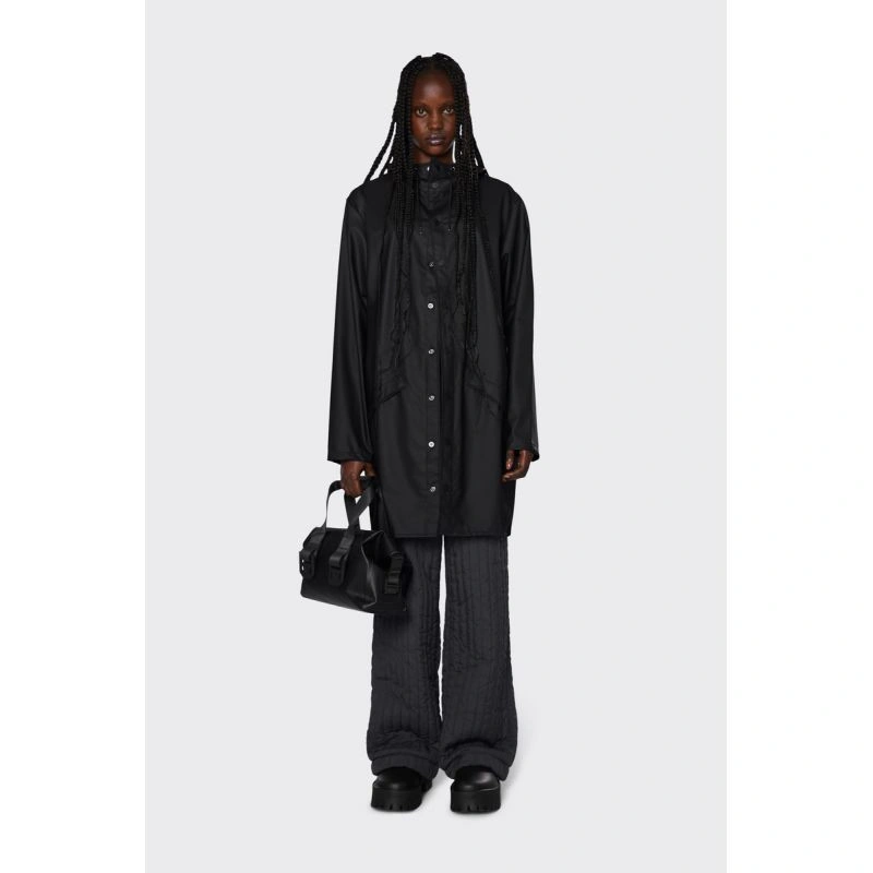 - Tato nepromokavá bunda je ušita z typické PU tkaniny Rains a má ultrazvukově svařované švy.
