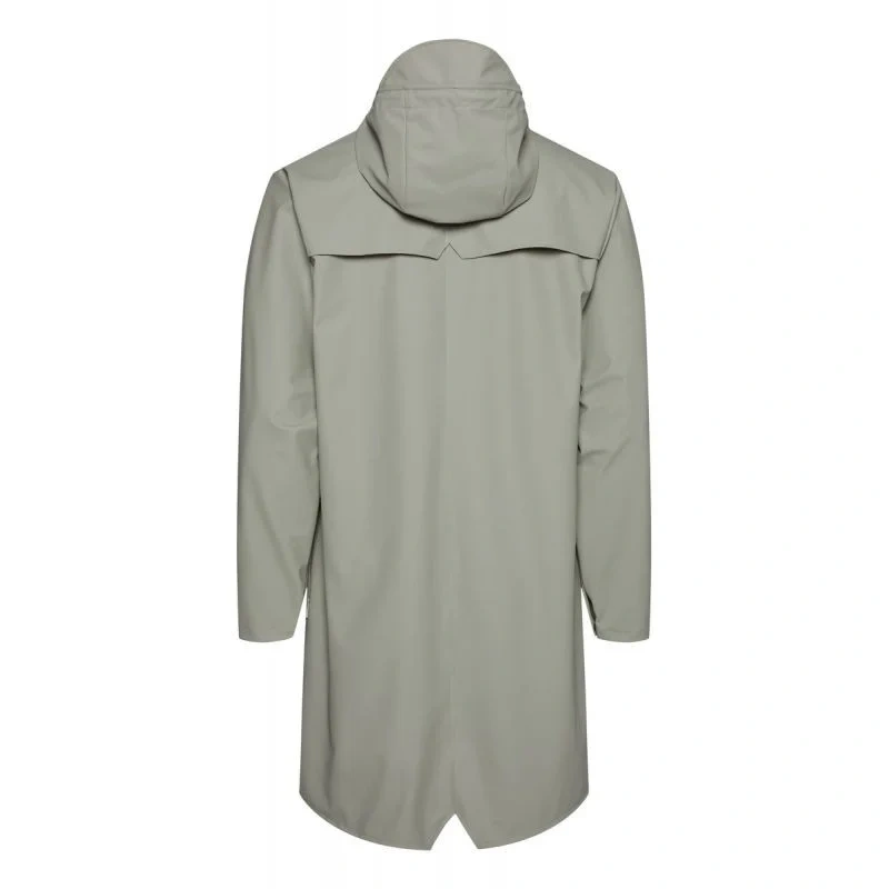 Dlouhá bunda je delší verzí klasické bundy Rain, Jacket.tato stále moderní unisexová bunda do deště poskytuje vysokou funkčnost v minimalistické siluetě.mezi vlastnosti patří dvojitě svařované diagonální kapsy s klopou, nastavitelné manžety a lemování rybím ocasem.celý vzhled je doplněn zapínáním na patentky, poutky v podpaží a zadním sedlem se skrytými rozparky.Tato nepromokavá bunda je ušita z typické PU tkaniny Rains a má ultrazvukově svařované švy.povrchová úprava je lehká, jemná na dotek a elegantně uvolněná.