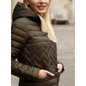 Bunda pro chladné podzimní dny. Ozdobné prošívání ve tvaru rybí kosti zvýrazňuje střih v pase. Dodává siluetě jedinečný ženský tvar. Bunda se zapíná na patentky. Kapsy diskrétně skryté v příčném prošívání, které není pouhým okem viditelné. Bunda je k dispozici s přírodní i umělou výplní. Díky přírodní výplni bude bunda fungovat i při minusových teplotách. Dodává se ve dvou barevných variantách: černé a khaki.