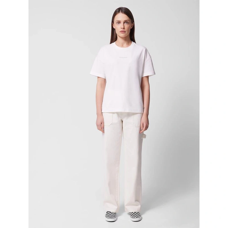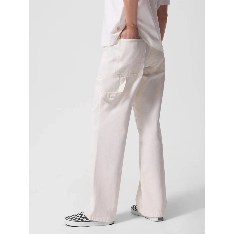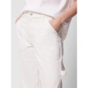 Džínové kalhoty s vysokým sedem, pasem s poutky na pásek, zapínáním na zip a knoflík, velkými otevřenými kapsami na přední straně, třemi kapsami na zadní straně a poutkem inspirovaným pracovními kalhotami. Jsou vyrobeny z bavlněné tkaniny, materiál byl opraný, takže není tuhý, dobře sedí a je příjemný na dotek. Na poutku na pásek je vyšité jedinečné číslo modelu, které označuje střih a roční období džínů.