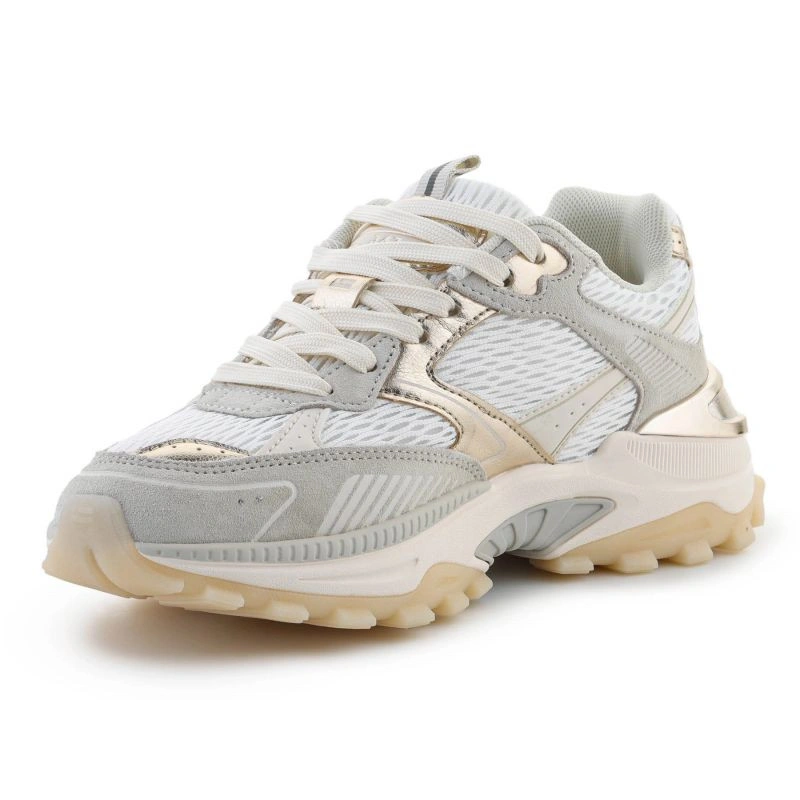 - Lesklý svršek ve zlaté barvě upoutá pozornost, zatímco lehká konstrukce a robustní podrážka zajistí každodenní pohodlí.