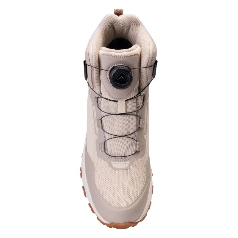Dámská turistická obuv KATRIAN MID WP WO'S značky Elbrus je ideální pro procházky lesem nebo horské túry, protože svršek a zpevněná pata stabilizují kotníkový kloub. Představený model má membránu Waterproof®, která zvyšuje úroveň nepromokavosti a zajišťuje správnou cirkulaci vzduchu. Klasické tkaničky nahradil systém Freelock®, který umožní rychlé zapínání bot - stačí otočit kolečkem.