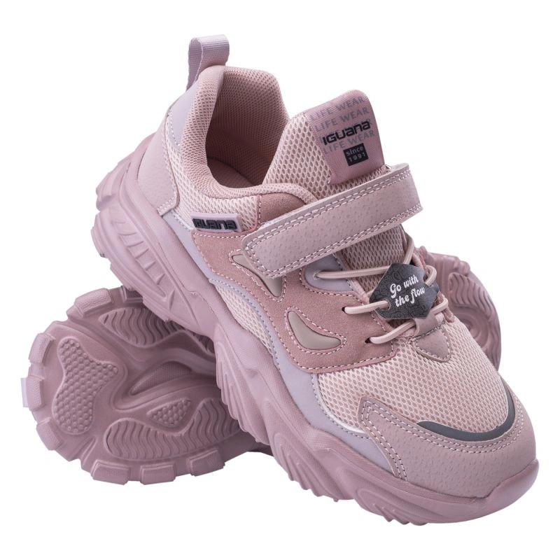 Dětské boty BONSI JRG značky Iguana jsou vyrobeny z kombinace síťoviny a syntetických vložek. Síťovina zvyšuje prodyšnost boty, zatímco syntetické vložky jemně pokrývají svršek a zpevňují konstrukci svršku. Klasické tkaničky byly nahrazeny elastickými pásky pro snadné nazouvání a vyzouvání, zatímco jediný pásek na suchý zip přizpůsobí svršek noze. Pěna EVA použitá v podrážce zvyšuje pohodlí boty.
