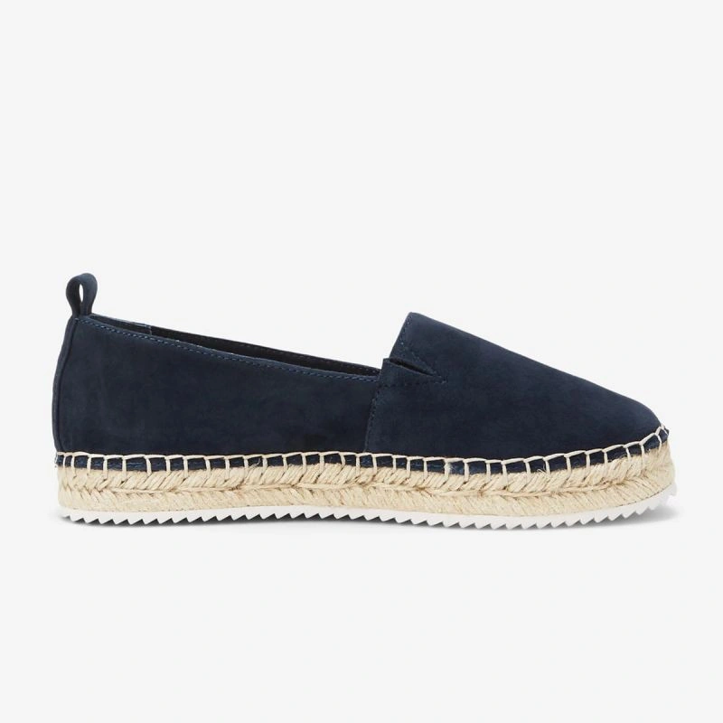 Tento model z kozího semiše potěší stylem espadrille s pletenou jutovou podrážkou a kontrastním prošíváním po obvodu.