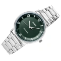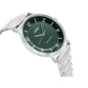 Vyrobeny z vynikající ušlechtilé oceli, která kombinuje odolnost s luxusní povrchovou úpravou Její pevná konstrukce je nejen zárukou spolehlivosti, ale také jistotou, že hodinky budou perfektně ležet, ať už den přinese cokoli. Vzhled doplňuje precizní spona s vyraženým logem, která dodává hodinkám punc noblesy a jedinečnosti.
