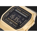 If you're looking for a watch that combines an 80s vibe with a modern finish, the A168WEGB-1BEF will hit the spot. It's a Casio digital classic in a whole new guise - the black dial, gold detailing and black ion-plated bracelet create a style that says more than you might think. Since its launch in the late 80s, theA168 series has gained iconic status. This model has stayed true to the original design, awarded with the prestigious Good Design Long Life Design Award. But it's not just about looks. This is a watch that does its job: electroluminescent EL backlight, 1/100th of a second stopwatch, daily alarm, automatic calendar and a battery that lasts up to 7 years. Just put it on - and wear it.
