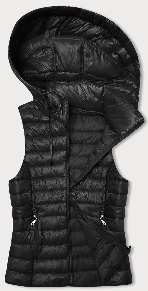 Vesta je lehce zateplená syntetickou péřovou výplní, má vypasovaný střih, dvě kapsy a zapíná se zipem. Model má délku k bokům.