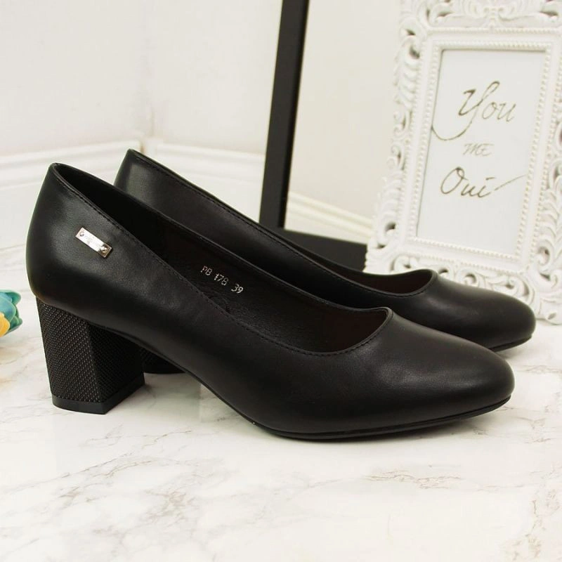 Černé lodičky Sergio Leone W SK314A s ozdobným sloupkem 36