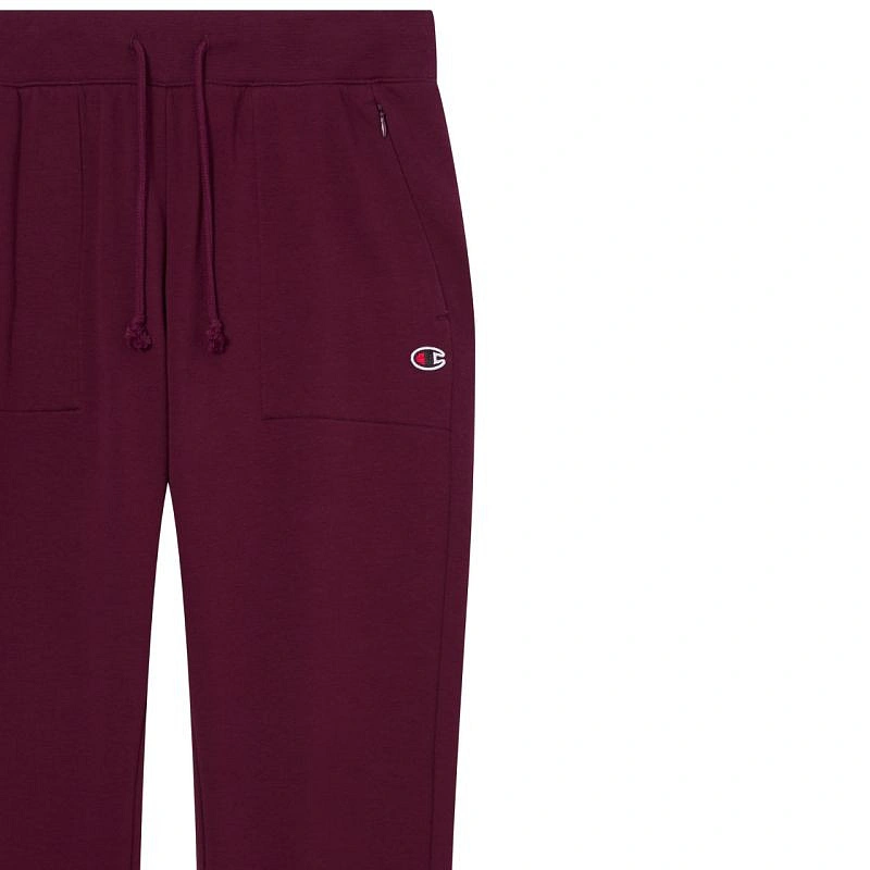 Dámské slim kalhoty Champion bordó 118041 RS522 Dámské tepláky Champion jsou ideální pro každodenní nošení. měkký úplet. boční kapsy na zip. slim střih. nastavitelný pas se stahovací šňůrkou. elastický pas. materiál: 80% bavlna, 15% polyester, 5% elastan.