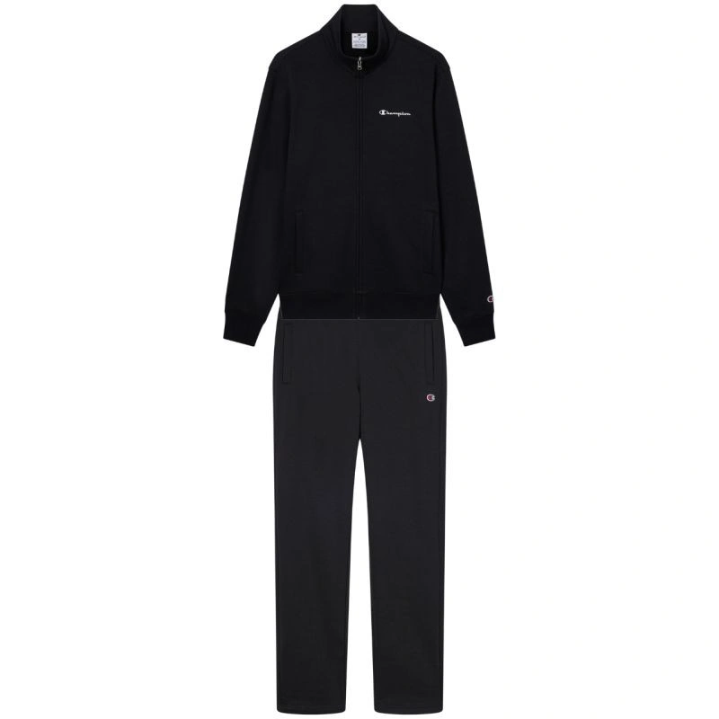 Pánská tepláková souprava Champion Black 221786 KK001 Pánská tepláková souprava adidas je ideální pro každodenní nošení a obsahuje mikinu a tepláky, zip po celé délce na stojáčku, žebrované manžety a pas, elastický pas a nakládané kapsy na nohavicích a kapsy na mikině i kalhotách. Hlavní tkanina: 55 % bavlna, 45 % polyester.