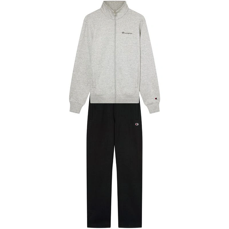 Pánská tepláková souprava Champion černo-šedá 221786 EM021 Pánská tepláková souprava adidas je ideální pro každodenní nošení a obsahuje mikinu a tepláky, zip po celé délce na stojáčku, žebrované manžety a spodní lem, elastický pas a nakládané kapsy na nohavicích a kapsy na mikině i teplácích. Hlavní tkanina: 55 % bavlna, 45 % polyester.