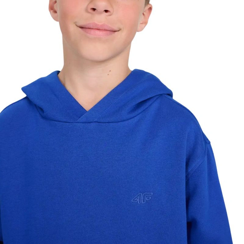Bluza dla chłopca 4F M1945 kobalt 4FJWAW25TSWSM1945 36S Bluza dla chłopca 4F sprawdzi się na co dzień. Dane techniczne:· Materiał główny: 80% bawełna, 20% poliester· Materiał dodatkowy: 100% bawełna· Materiał dodatkowy 2: 95% bawełna, 5% elastan· Krój: oversize, który luźno układa się na sylwetce i zapewnia swobodę· Standardowy fason sięgający do bioder· Wykonana w 80% z bawełny, dzięki czemu jest miękka, trwała i przyjemna w dotyku· Dodatek poliestru (20%) sprawia, że materiał jest wytrzymały i odporny na zużycie przez wiele sezonów· Jednolita kolorystyka pasująca do wielu stylizacji· Dzianina dresowa french terry na zewnątrz jest gładka, a wewnątrz ma widoczny splot w postaci pętelki· Dekolt ze zintegrowanym kapturem· Mankiety ze ściągaczem· Niezapinana kieszeń kangurka na przodzie· Wkładana przez głowę· Dół ze ściągaczem
