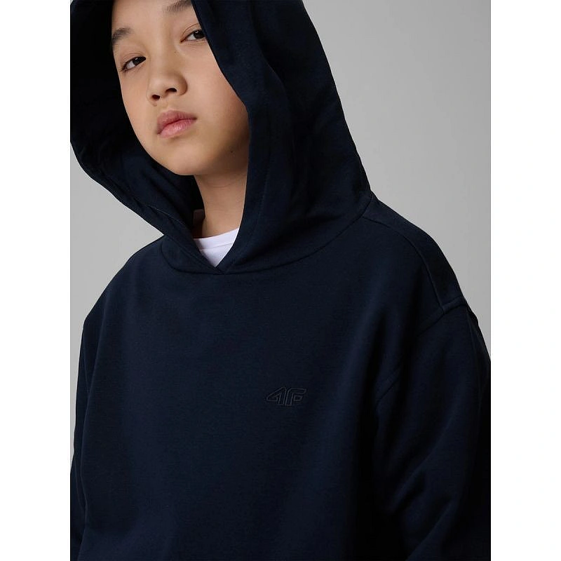 Chlapecká mikina s kapucí 4F je pohodlný a praktický kousek oblečení pro děti a dospívající a je ideální pro každodenní nošení, a to jak pro běžné, tak sportovní oblečení. Volný oversize střih poskytuje velkou volnost pohybu, zatímco jednostranně počesaná vnitřní strana zajišťuje mimořádné teplo a tepelný komfort.