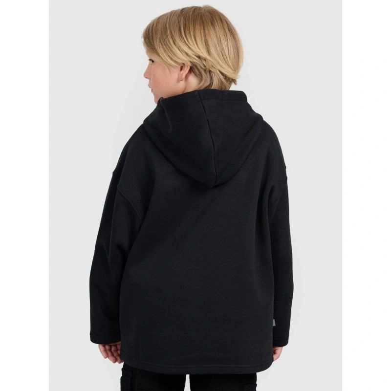 tato chlapecká mikina je kombinací pohodlí, tepla a ležérního stylu. Díky svému oversize střihu volně sedí na postavě a nabízí plnou volnost pohybu, zatímco počesaný vnitřek zajišťuje extra teplo v chladnějších dnech. Jednoduchý žerzejový úplet s vysokým obsahem bavlny je měkký, odolný a příjemný na dotek, takže mikina je ideální pro každodenní nošení i aktivní situace.