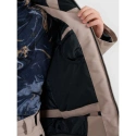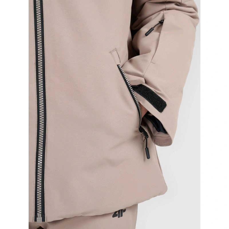 na bocích jsou kapsy na zip, další kapsa na rukávu, kapsa na skipas a vnitřní kapsa na brýle pro bezpečné uložení nezbytností na svahu.