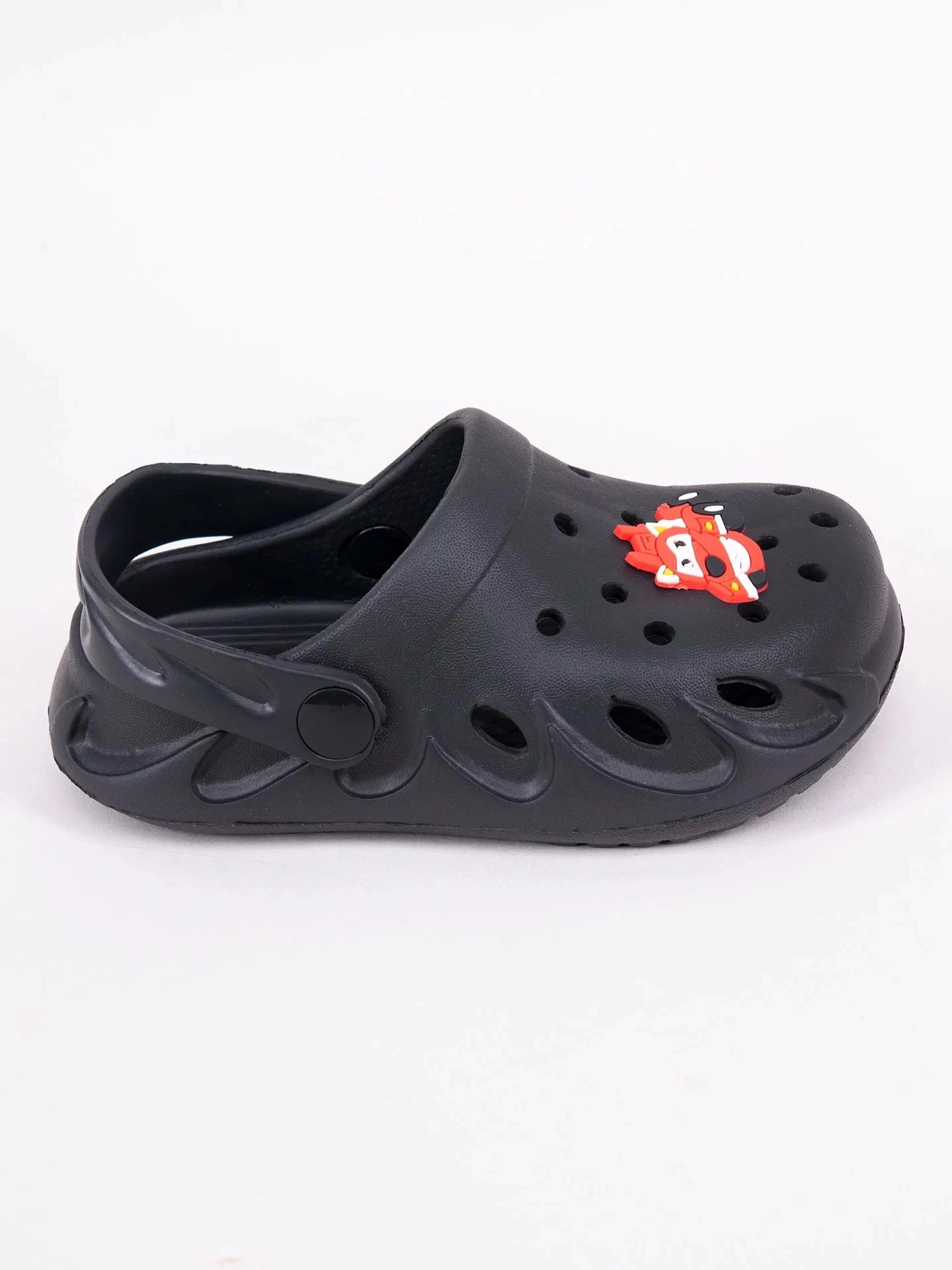 Chlapecké letní žabky crocs v černé barvě. Motiv Funny Car na přední straně. Lze je nosit dvěma způsoby: jako žabky nebo sandály. Pásek na patě zabraňuje náhodnému sklouznutí obuvi z nohy. Žabky jsou nejrychleji nazouvatelným a nejpohodlnějším modelem obuvi na léto. Crocsy mají také větrací otvory, které zajišťují volné proudění vzduchu a pohodlí nohou i v těch nejteplejších dnech. Jsou vyrobeny z vysoce kvalitní pěny, díky níž jsou extrémně lehké a velmi pohodlné. Podrážka je silná a pevná a její profilovaný tvar se přizpůsobuje anatomické struktuře chodidla a prstů. Naše žabky mají velmi univerzální použití. Jsou ideální na pláž, procházku, zahradu nebo jako každodenní domácí obuv.