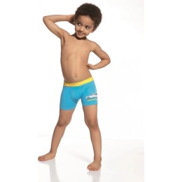 Chlapecké boxerky dekorované potiskem. Ploše spojená guma v kontrastní barvě, obšitá bavlnou, netlačící zakončení nohavic poskytuje pohodlí a komfort. Dokonale přiléhají k tělu. Složení: 95% bavlna, 5% elastan