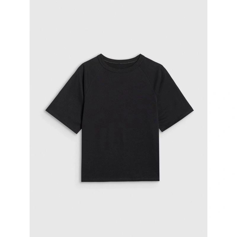 Kulatý výstřih je zakončen lehkým žebrováním, zatímco raglánové rukávy zdůrazňují sportovní charakter a zvyšují volnost pohybu.