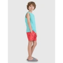 tyto chlapecké boardshortky jsou navrženy pro naprostou volnost při letních aktivitách. Lehká, rychleschnoucí tkanina poskytuje pohodlí a prodyšnost, zatímco pravidelný střih a délka ke kolenům zajišťují pohodlné nošení při plavání, plážových radovánkách nebo rekreaci u vody. Celoplošný potisk dodává šortkám charakter, zatímco vnitřní síťované kalhotky poskytují dodatečné krytí a podporu. Elastický pas se zavazováním umožňuje nastavení, zatímco praktické boční kapsy a zadní kapsa umožňují uložení drobných předmětů. Jedná se o všestranný, funkční model pro každou prázdninovou výzvu.