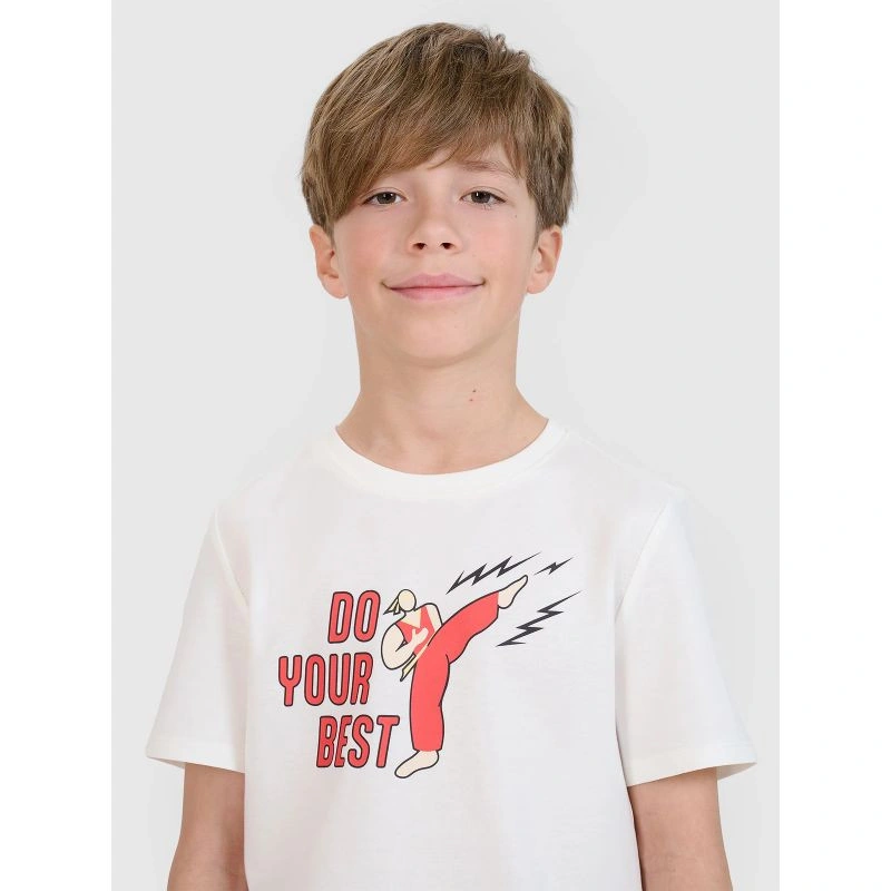 Hladké chlapecké tričko 4F je všestrannou volbou pro teplejší dny a hodí se ke každodennímu i sportovnímu oblečení. Je vyrobeno ze 100% bavlny, je měkké, prodyšné a příjemné na dotek.