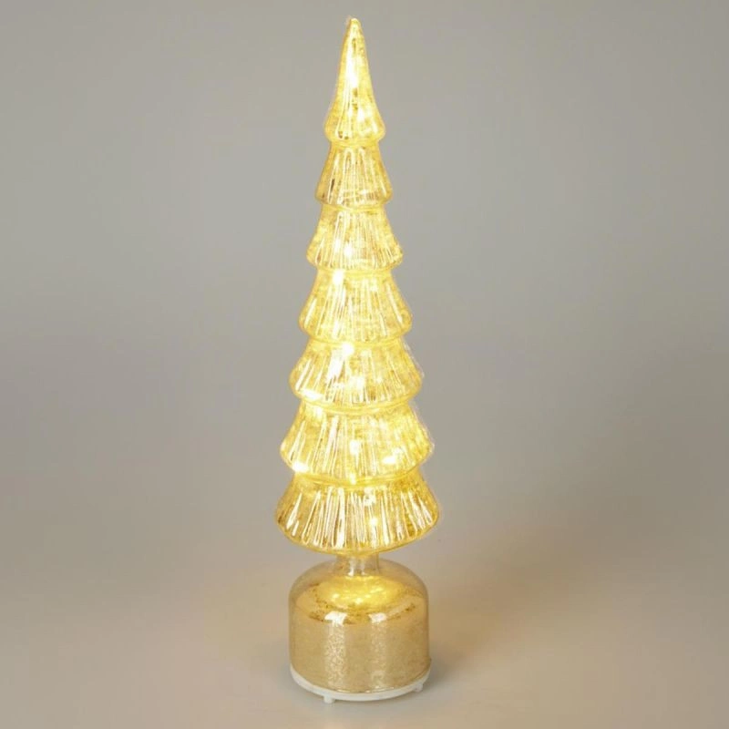 Zlatý dekorativní vánoční stromek LED o průměru 40 cm je elegantní skleněná vánoční dekorace, která vytváří hřejivou, kouzelnou atmosféru a upoutá pozornost svým mihotavým světlem.