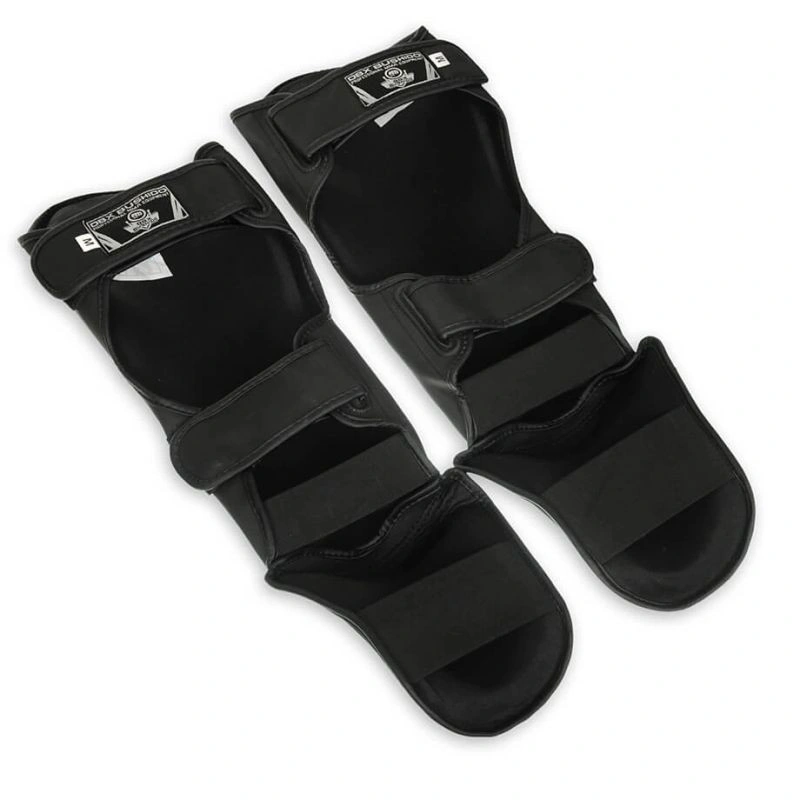 Robustní konstrukce dokonale tlumí sílu kopů a anatomicky tvarované výlisky v kombinaci se systémem suchých zipů a stahovacích pásků zabraňují sklouznutí chráničů během tréninku.