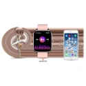 Chytré hodinky Giewont GW230-1 v elegantním růžovém provedení jsou ideální volbou pro ty, kteří ocení decentní styl v kombinaci s moderní funkčností. Její jemné barevné provedení a pečlivě navržený obal působí žensky a sofistikovaně, takže se skvěle hodí jak pro každodenní nošení, tak pro elegantnější komplety.Přehledný displej zajišťuje pohodlné ovládání a intuitivní menu umožňuje rychle najít všechny nejdůležitější funkce. Chytré hodinky podporují uživatele v péči o jeho zdraví a aktivitu tím, že umožňují sledování srdečního tepu, kvality spánku, kroků nebo spálených kalorií. Díky upozorněním z telefonu můžete být vždy v obraze, aniž byste museli sahat po smartphonu.Zařízení má také budík a funkci buzení, takže je praktickou součástí každodenní organizace. Jemné vibrace vás nenápadně probudí nebo vám připomenou důležité úkoly. Kromě toho chytré hodinky umožňují díky vestavěnému mikrofonu a reproduktoru uskutečňovat hovory přímo ze zápěstí, což poskytuje pohodlí v situacích, kdy nemáte po ruce telefon.Giewont GW230-1 je kombinací elegance, pohodlí a moderních možností, dokonalým společníkem pro lidi, kteří chtějí zdůraznit svůj styl a zároveň využívat chytrá řešení na denní bázi.