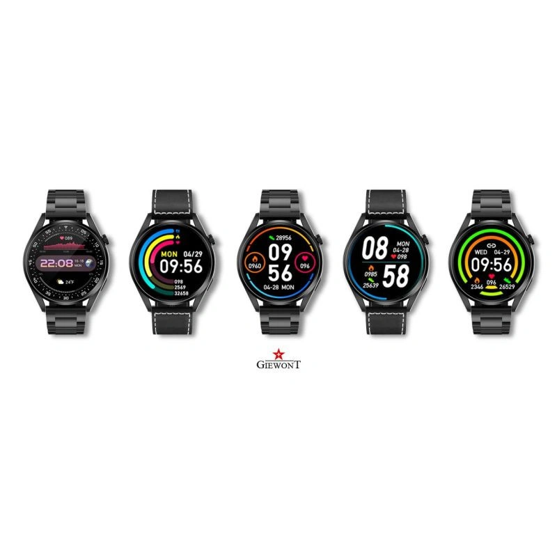 Jedná se o mimořádně elegantní chytré hodinky na náramku s přídavným silikonovým řemínkem nebo koženým řemínkem se silikonovou podšívkou, které vás budou provázet při vašich každodenních aktivitách. Jejich lehké pouzdro bude ideální pro jízdu na kole, běh a další sporty, které tyto chytré hodinky umožňují. S těmito chytrými hodinkami si můžete naplno vychutnat každý pohyb - Giewont GW450 vám umožní plánovat a kontrolovat čas, vzdálenost, spálené kalorie a efekt vašeho tréninku. Během aktivity nebo relaxace můžete poslouchat a ovládat hudbu.