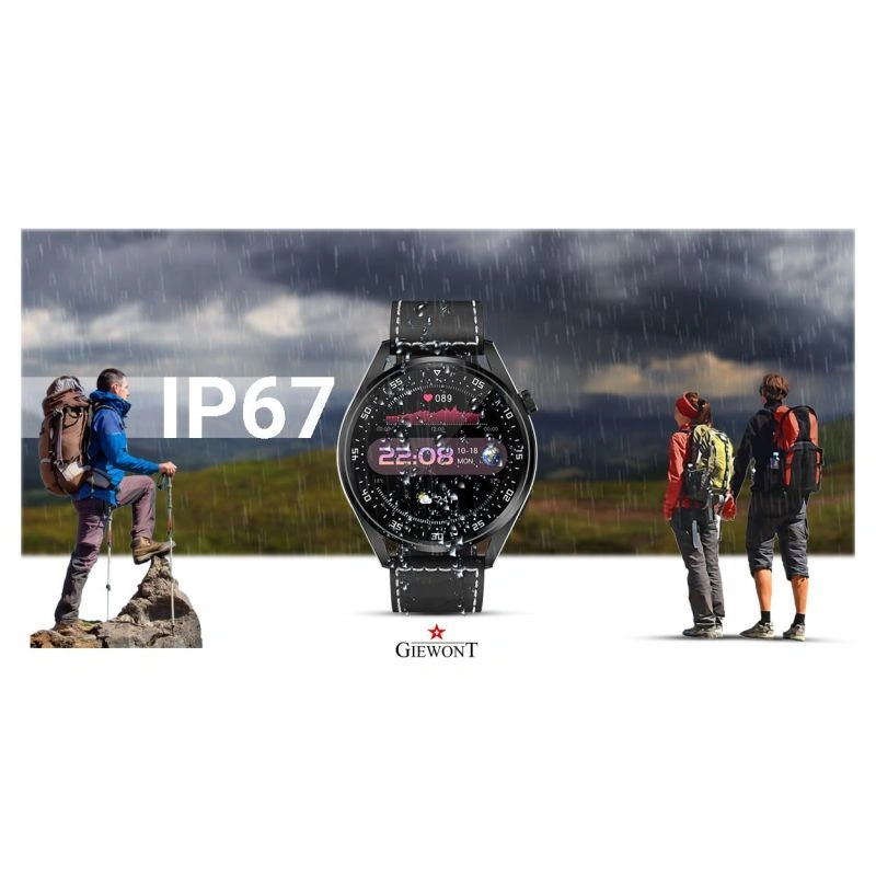Chytré hodinky Giewont GW450 mají stupeň vodotěsnosti IP67, jsou odolné proti náhodnému polití, postříkání a dešti. S tímto modelem se nemůžete vykoupat.