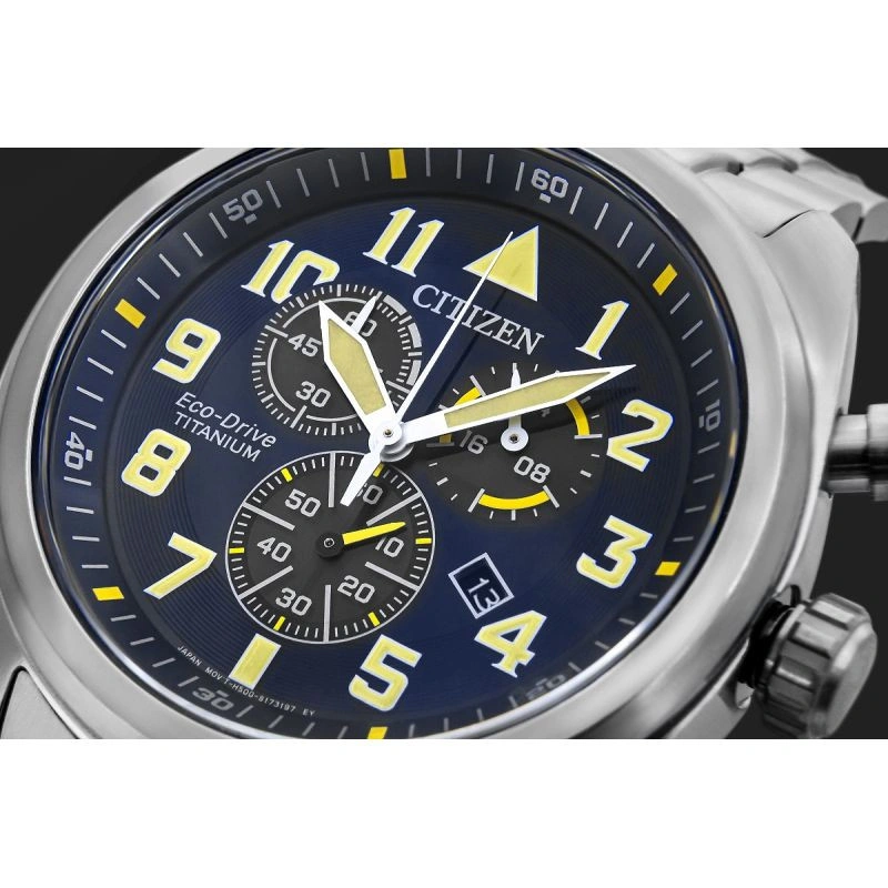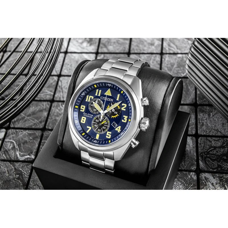 HodinkyAT2480-81L s chronografem z kolekce Super Titanium™ jsou sportovní hodinky, které se skvěle hodí do práce i pro volný čas. Jejich jedinečný design kombinuje stříbrné pouzdro a náramek z materiálu Super Titanium™, který je o 40 % lehčí a pětkrát tvrdší než nerezová ocel, a modrý ciferník s chronografem měřícím až 60 minut s přesností na jednu sekundu, funkcí 12/24hodinového zobrazení času a ukazatelem data. Luminiscenční ručičky a indexy navíc zajišťují vynikající viditelnost a safírové sklíčko s antireflexní vrstvou zvyšuje čitelnost za všech podmínek. Hodinky se zapínají na skládací knoflíkovou sponu a jsou vodotěsné do hloubky 100 m. Hodinky fungují na technologii Eco-Drive, která je napájena světlem, takže odpadá nutnost výměny baterií.