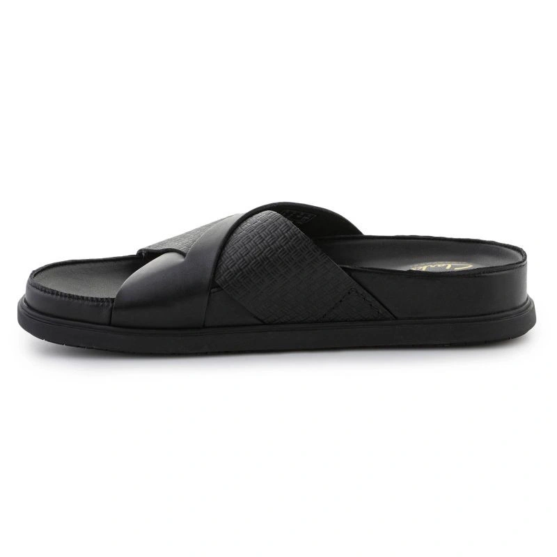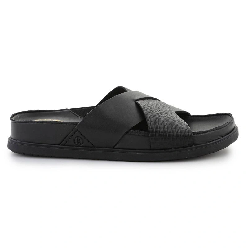 Lehká a pružná gumová podrážka nabízí dobrou přilnavost a stabilitu, díky čemuž jsou sandály vhodné pro každodenní nošení i prázdninové procházky. Klasická černá barva a překřížené pásky dodávají modelu nadčasový, univerzální charakter.
