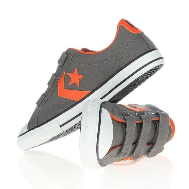 Stylové a pohodlné tenisky od kultovní značky Converse z kolekce Star Player.Barva:šedá/oranžová Oblíbené po celém světě.Děti hvězd jako David Beckham,Gwen Stefani,Reese Witherspoon a další byly spatřeny, jak nosí ikonické tenisky CONVERSE! Svršek je vyroben z pevného plátna.Zapínání na tři pásky se suchým zipem.Odolné a pohodlné!
