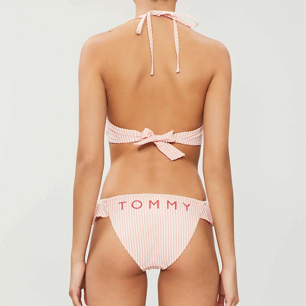 Vrchní díl dámských plavek Tommy Hilfiger sportovního střihu je vyrobený z příjemného rychleschnoucího materiálu.