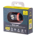 LAMPKA CZOŁOWA WAGA: 76 g SKŁAD MATERIAŁOWY: OBUDOWA: ABS OPASKA: 100% POLIESTER SPECYFIKACJA: LUMENY: 400 LM OCHRONA PRZED WODĄ: IPX4 3 KOLORY DIODY LED: BIAŁY, CZERWONY, CIEPŁY BIAŁY TRYBY PRACY: MOCNY / ŚREDNI / SŁABY 7 TRYBÓW PRACY: SŁABY / CIEPŁA BIEL / CZERWONY / EKOLOGICZNY / ŚREDNI / MOCNY / WZMOCNIONY 3 TRYBY ŚWIATŁA: STAŁY / STROBOSKOP / S.O.S. BATERIA LI-ION 900 mAh ZASILANIE: AKUMULATOR ŁADOWANA PRZEZ USB-C MAKS. ZASIĘG: 40 m MAKS. CZAS PRACY LAMPKI: 55 h KĄT OBROTU: 180°