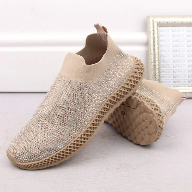 D&A W OLI257A béžová sportovní nazouvací obuv se zirkony