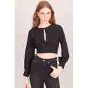 Model má na sobě velikost S.Rozměry modelu: výška 175 cm, poprsí 89 cm, pas 64 cm, boky 92 cm.