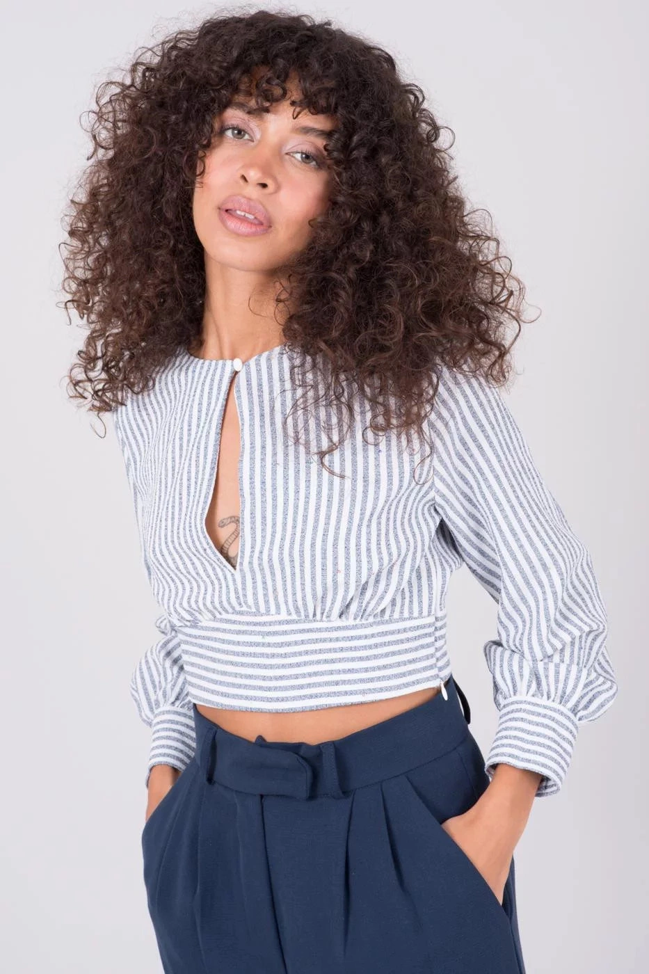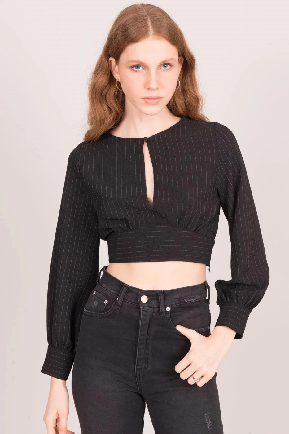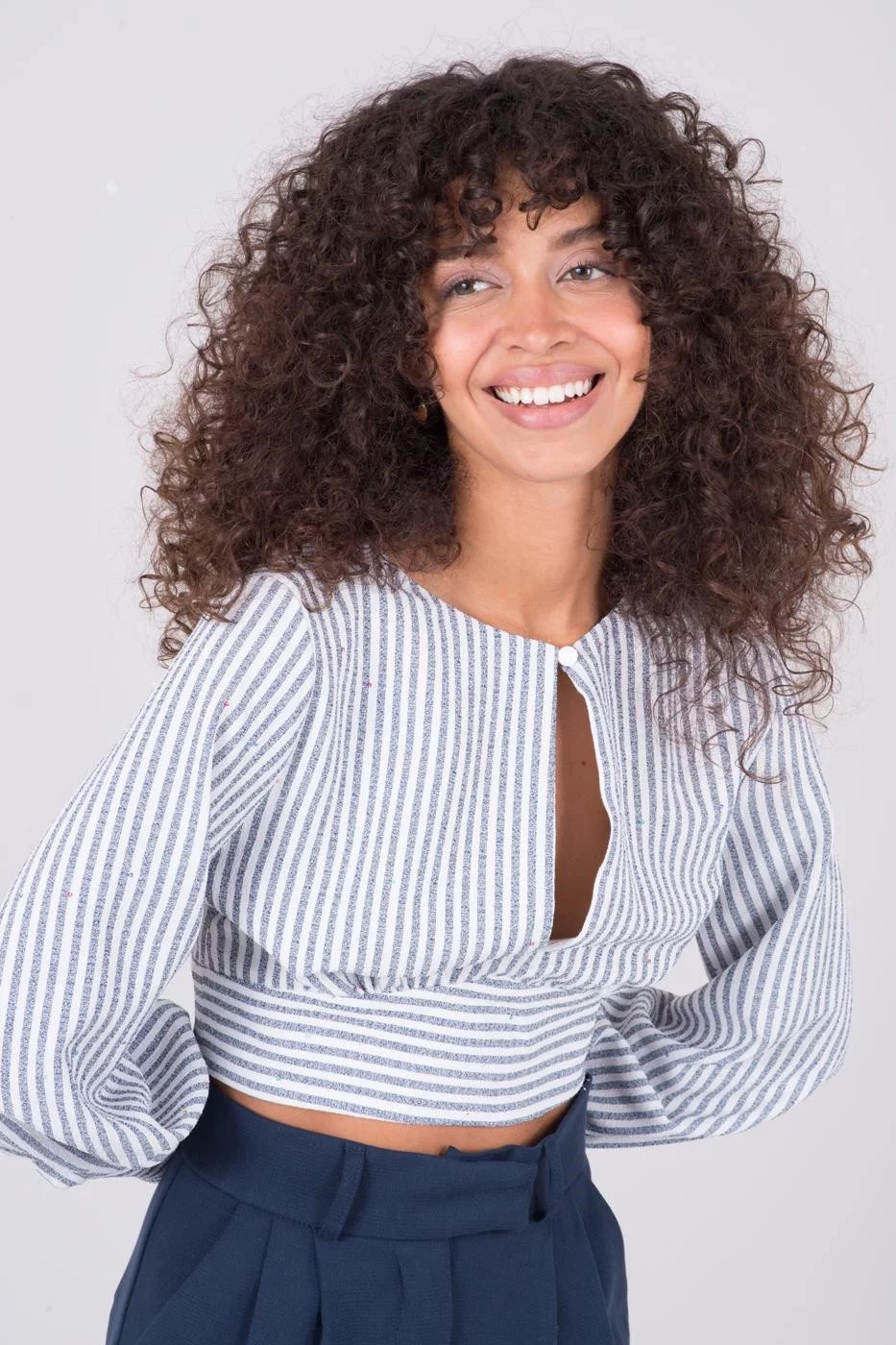 Model má na sobě velikost S.Rozměry modelu: výška 175 cm, poprsí 89 cm, pas 64 cm, boky 92 cm.