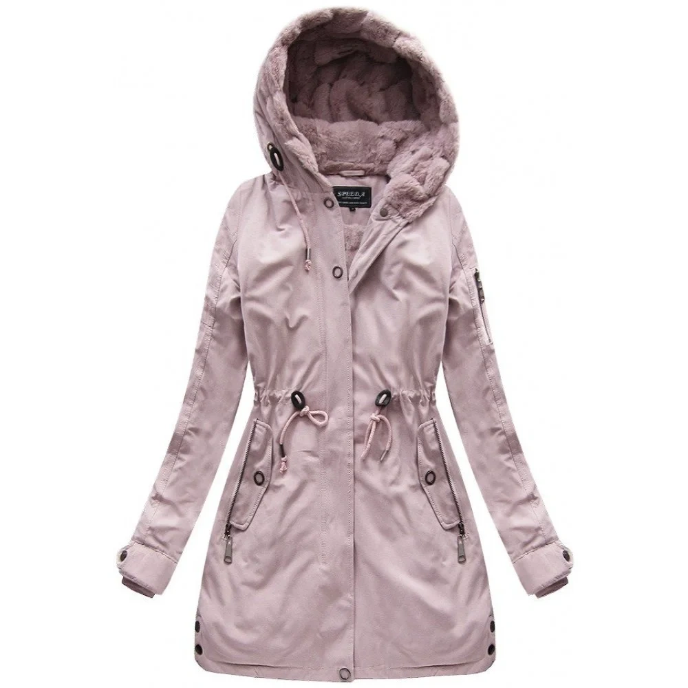 Prošívaná bunda ve starorůžové barvě s kapucí (7473-PLUS)