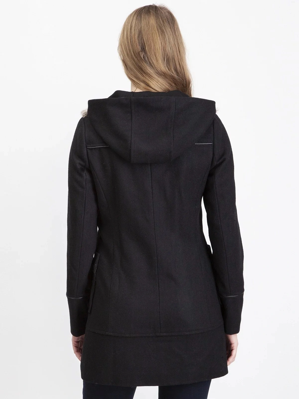 Dámský zimní kabát s kapucí. Ekologická kvalitní dekorativní kožešina na úrovni prsou. Kabát se zapíná na kolíčky. Má dvě vnější kapsy. Díky mimořádně měkké a odolné tkanině se v něm budou všechny dámy cítit skvěle, takže opravdu stojí za to ho mít. Dodává se v černé barvě.