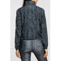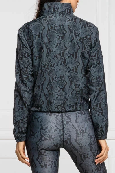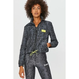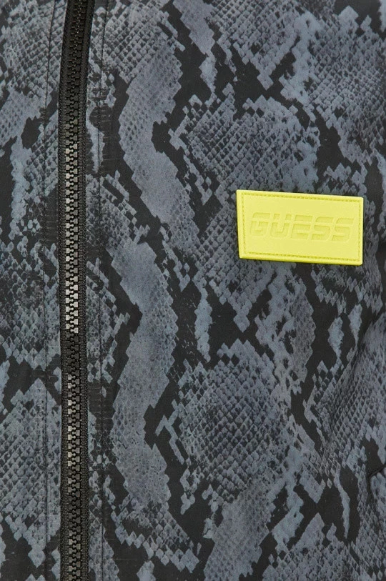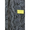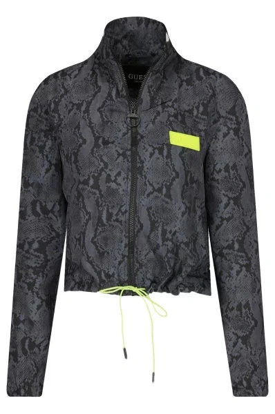 Stylová dámská bunda v šedo-černém hadím provedení. Detaily bundy (logo Guess a stahovací gumička) jsou navrženy ve výrazné fosforové barvě a doplňují tak celkový design bundy.