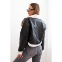 Stylová dámská bunda v pilotním stylu je kombinací moderního vzhledu a pohodlí na chladné dny. Vyrobena z hladkého materiálu s matným povrchem a podšitá měkkou kožešinou, poskytuje teplo a výjimečný komfort nošení. Široký límec s kožešinovým lemem, manžety s ohrnutím a nastavitelný pásek na spodní části podtrhují módní, městský charakter modelu.