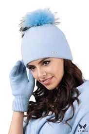 Dámská čepice¨s kožešinovou bambulí MEDIOLAN-PN modrá - Kamea UNI světle modrá