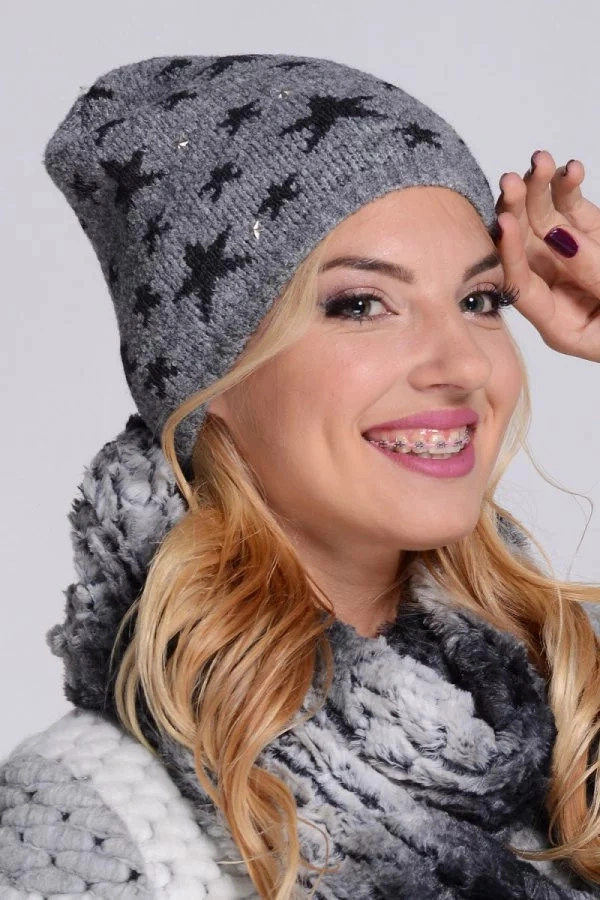 Dámská čepice Sara - Kamea UNI tm.šedá-vzor