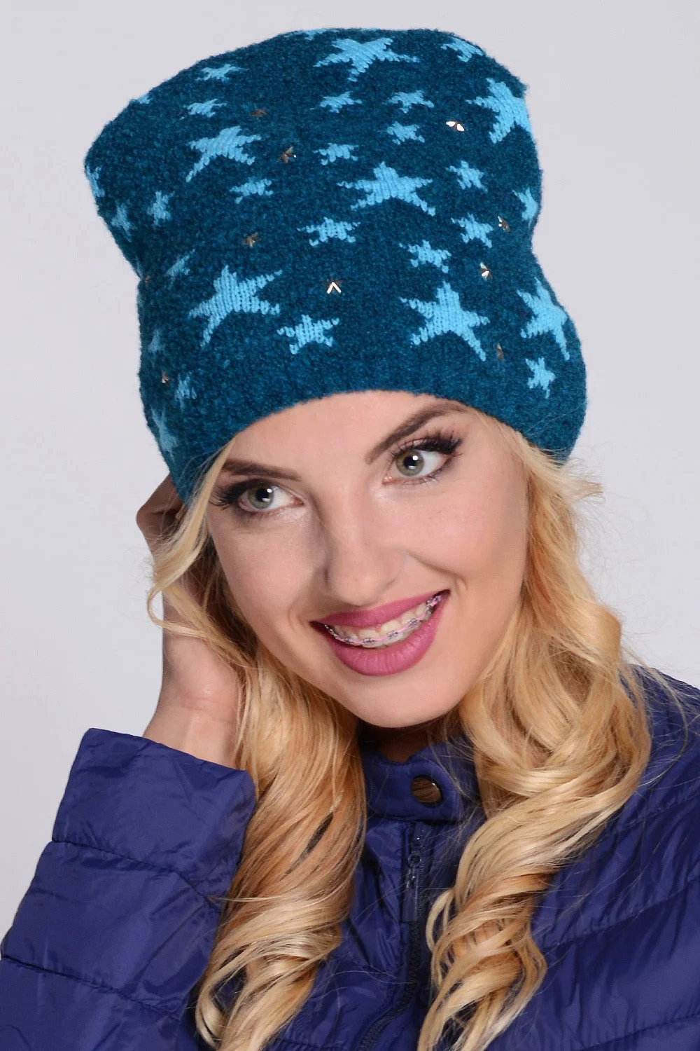 Dvouvrstvá dámská čepice s huňatou bambulí. Lem čepice je ozdobený bižuterním prvkem. Dostupné barvy