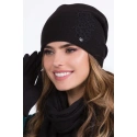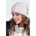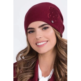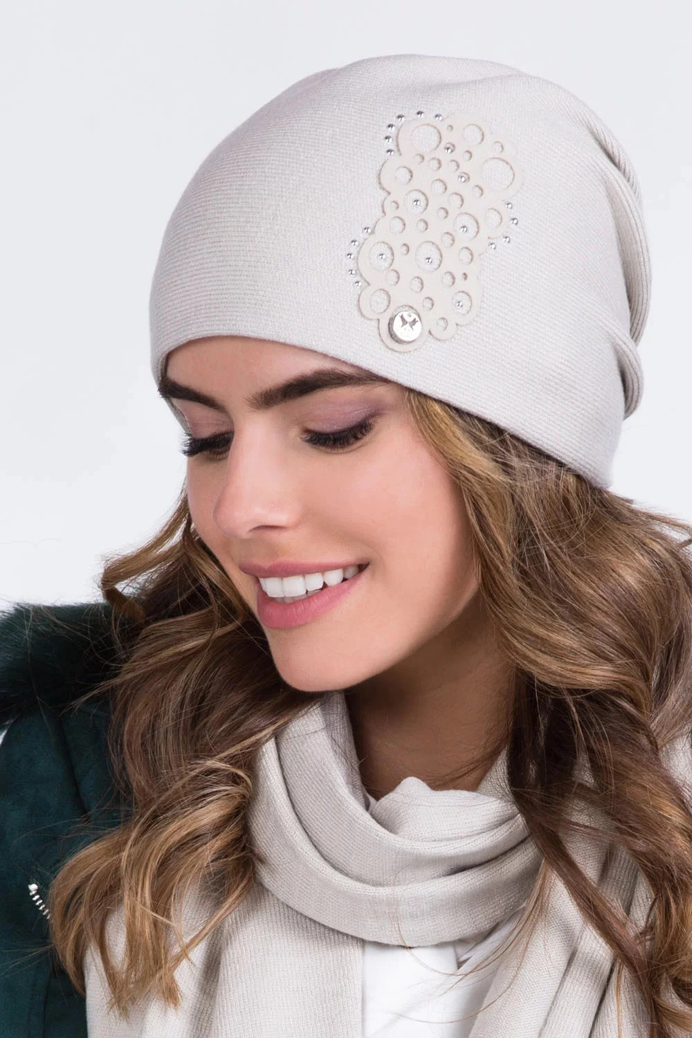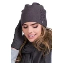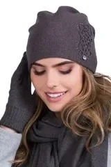 Čepice je vyrobená z teplé příze s přídavkem vlny a je ideálně vypasovaná. Přední díl modelu zdobí jemná aplikace. Model je dvouvrstvý a vzadu má tři záložky. Čepice je skvělou volbou pro chladné dny.