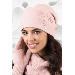 Tato hladká čepice je ideálně vypasovaná. Model je vyrobený z tenčí příze s přídavkem vlny a viskózy. Přední díl modelu zdobí půvabné vážky. Na zadním dílu jsou tři záložky. Čepice se skvěle osvědčí např. na podzim.