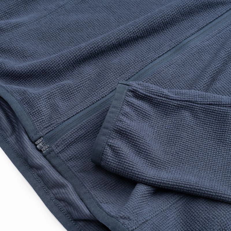 struktura fleecu v podobě kanálků pomáhá transportovat vlhkost ven