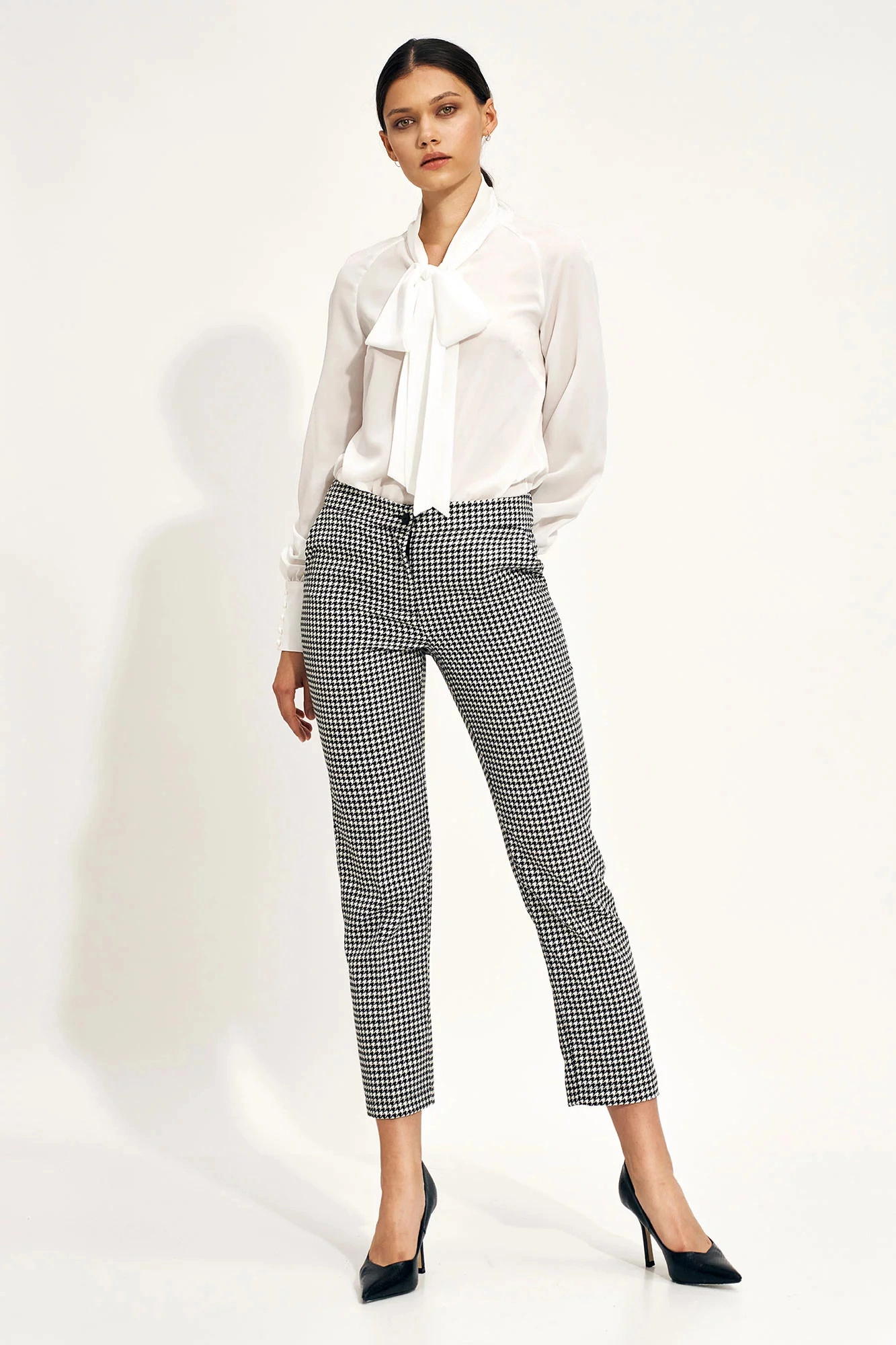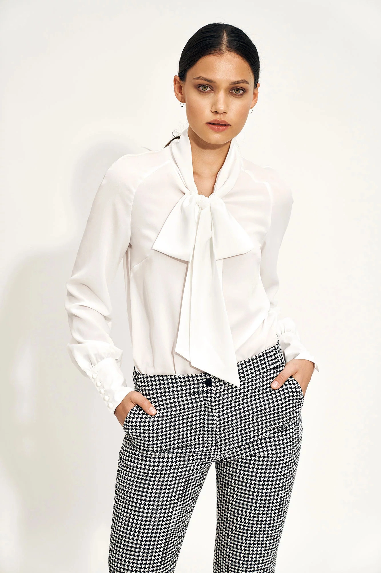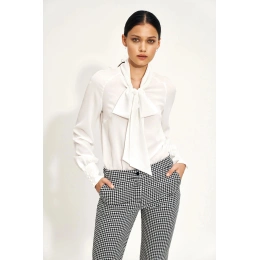 Volně vypasovaná a elegantní halenka s vázaným detailem vpředu. Dlouhé rukávy s knoflíky na manžetách.