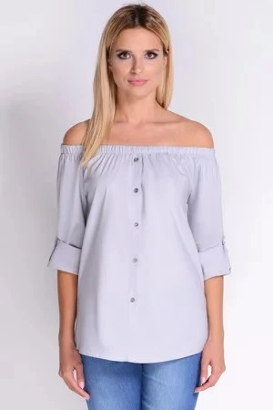 Dámská halenka s volánem na rukávech BLU2020-M19 šedá se vzorem - Monnari